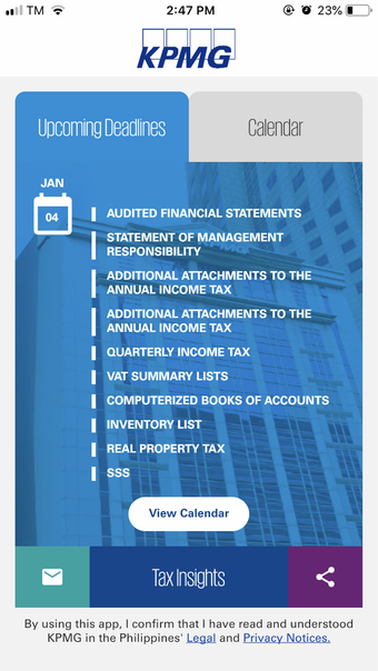 Naast het bijhouden van belastingdata, biedt de app ook toegang tot de Insights-pagina. Hier kunnen gebruikers de nieuwste uitgaven van de BIR en artikelen van KPMG over actuele fiscale onderwerpen doorbladeren. Deze kalender is bedoeld als een hulpmiddel voor cliënten en is niet de enige bron voor belastingnaleving, wat betekent dat het raadplegen van professionele belastingadviseurs blijft aanbevolen.